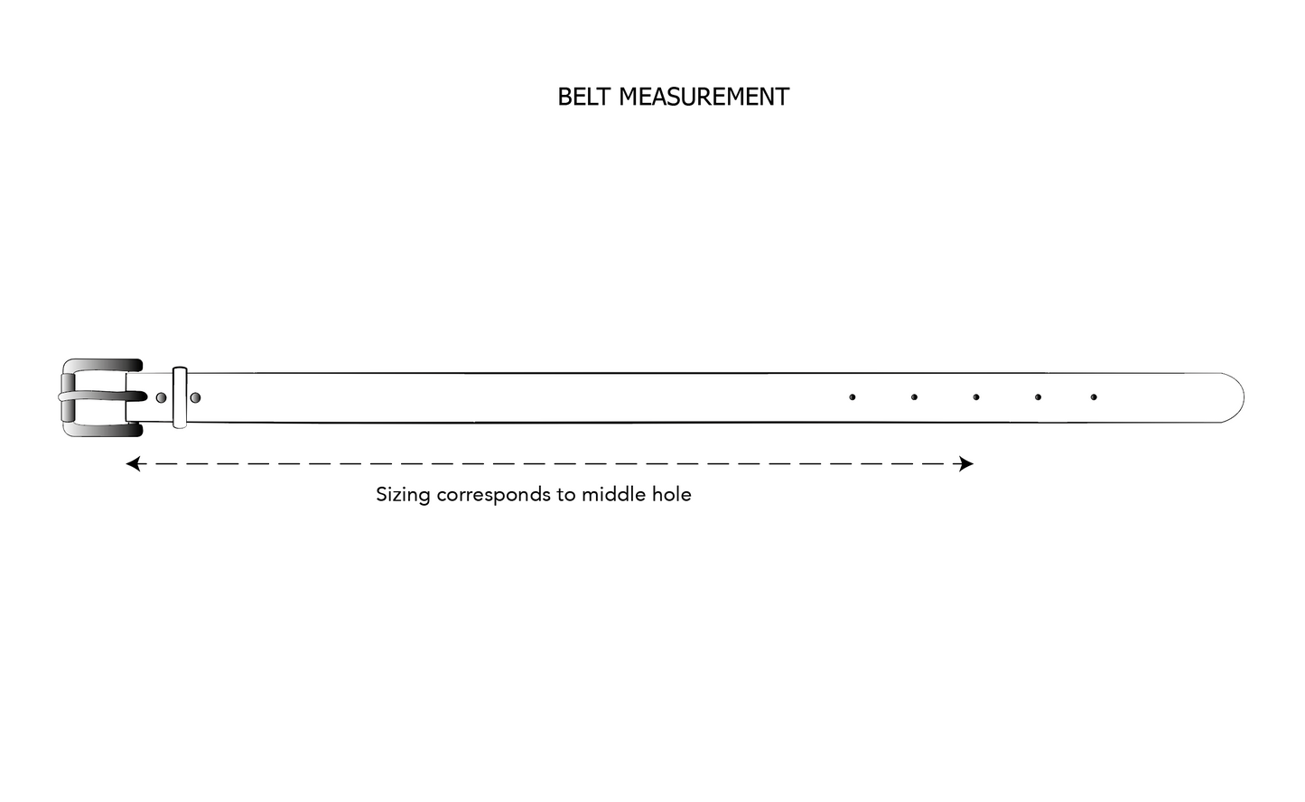 To find the correct size belt, first measure your waistline where your trousers sits. Taking into consideration the extra fabric from the trousers and top, it is recommended to add 2 inches to this measurement for your belt size.