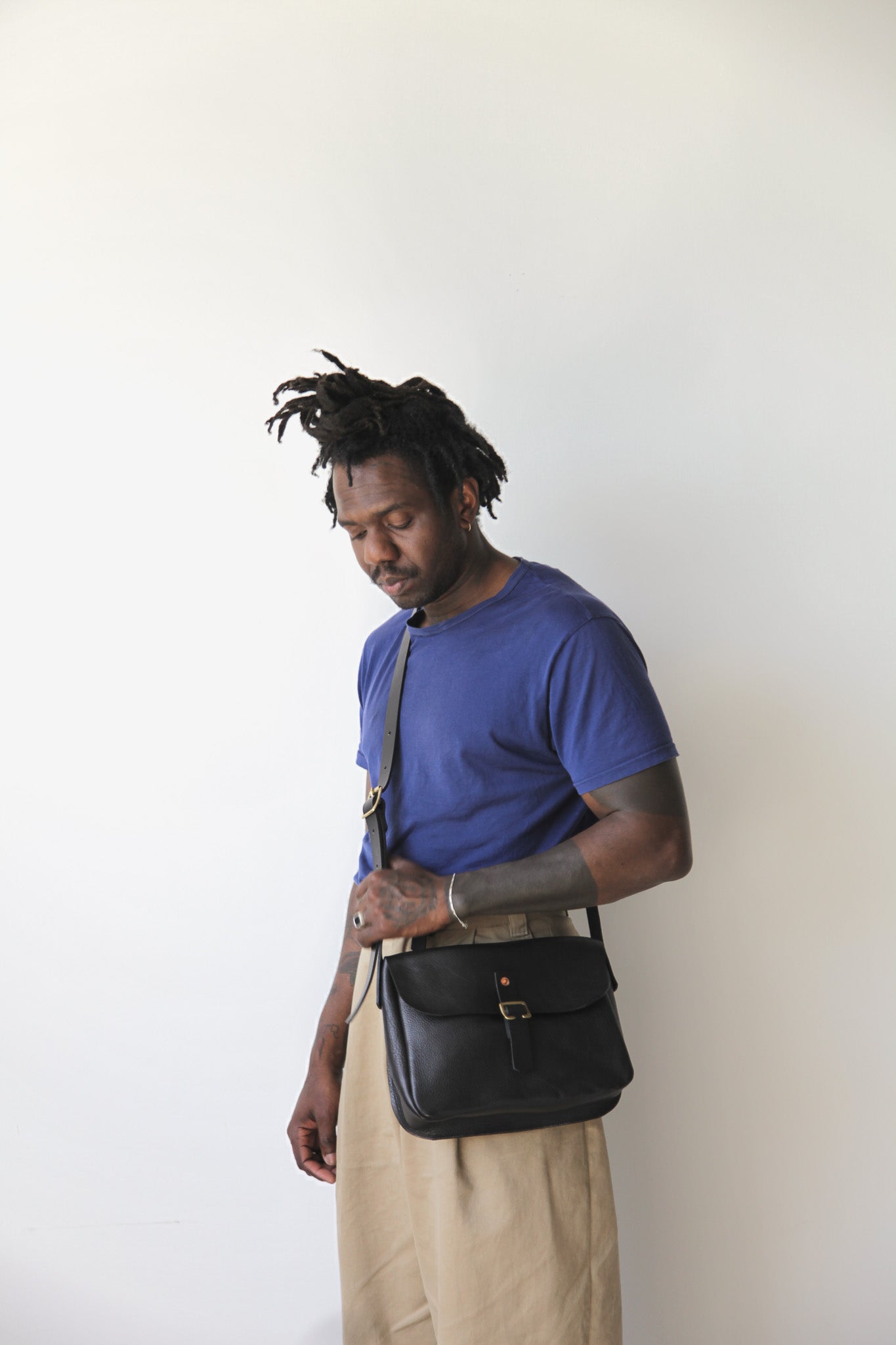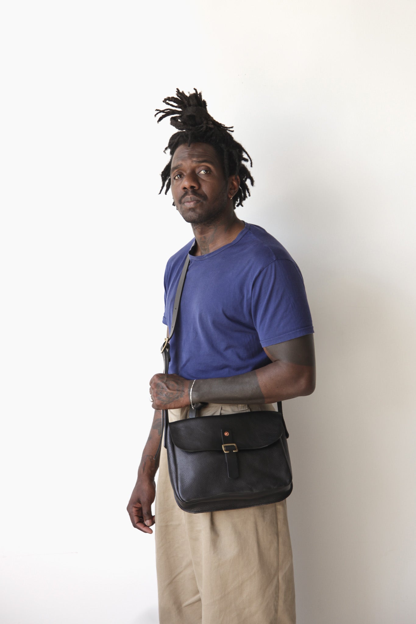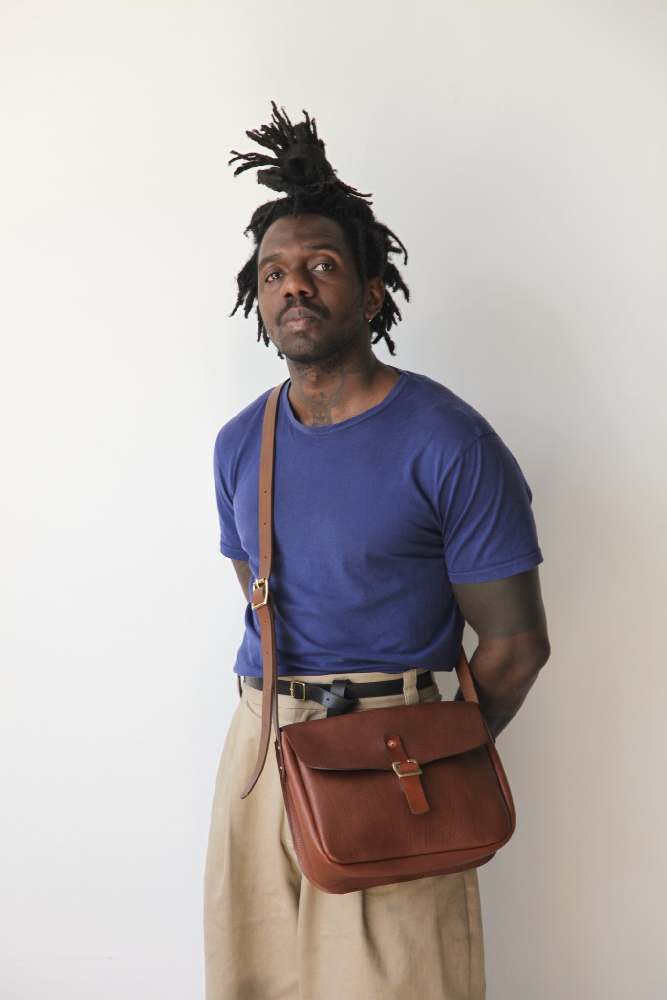 - Adjustable saddle leather strap with brass buckle