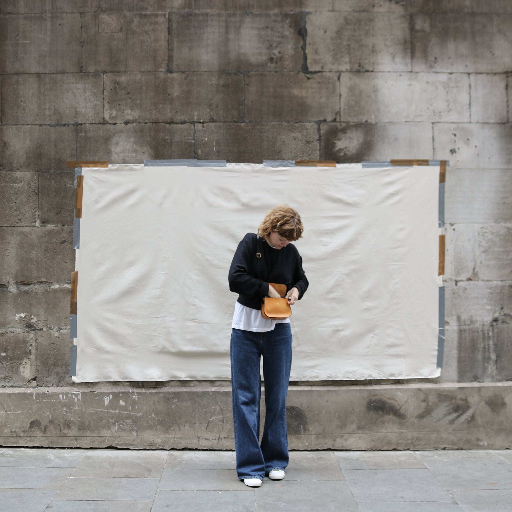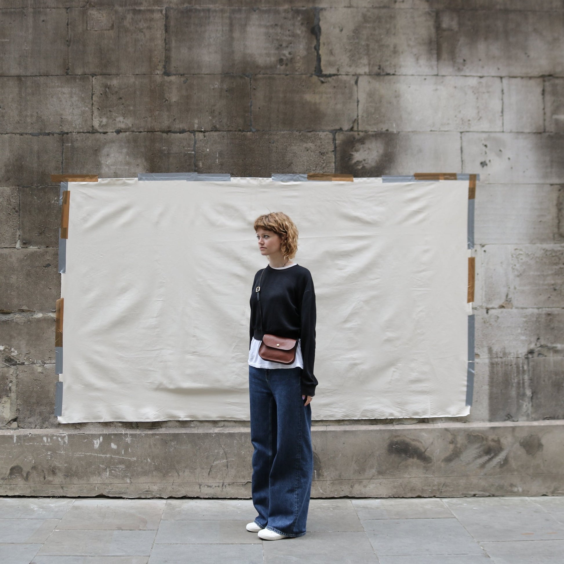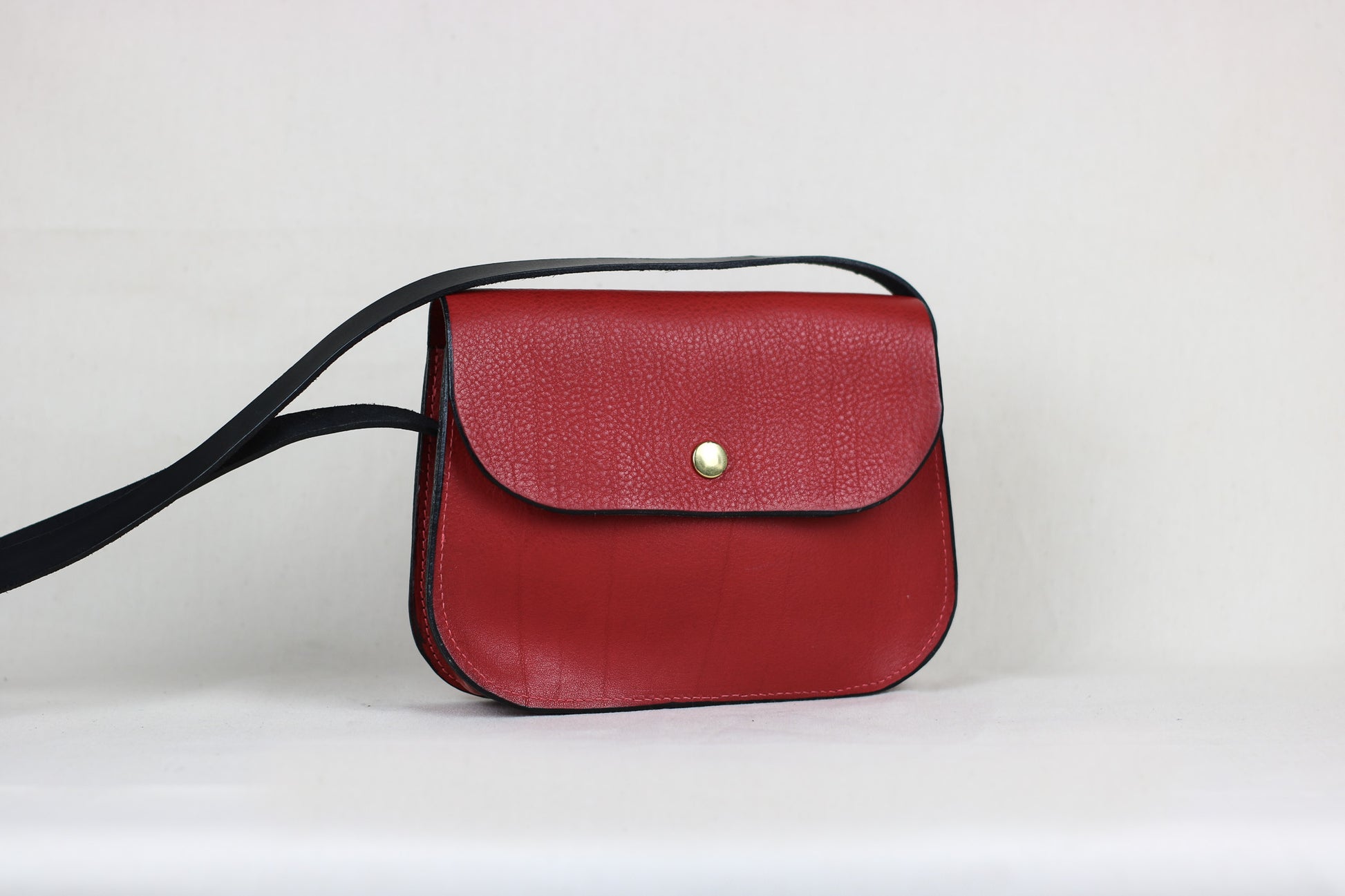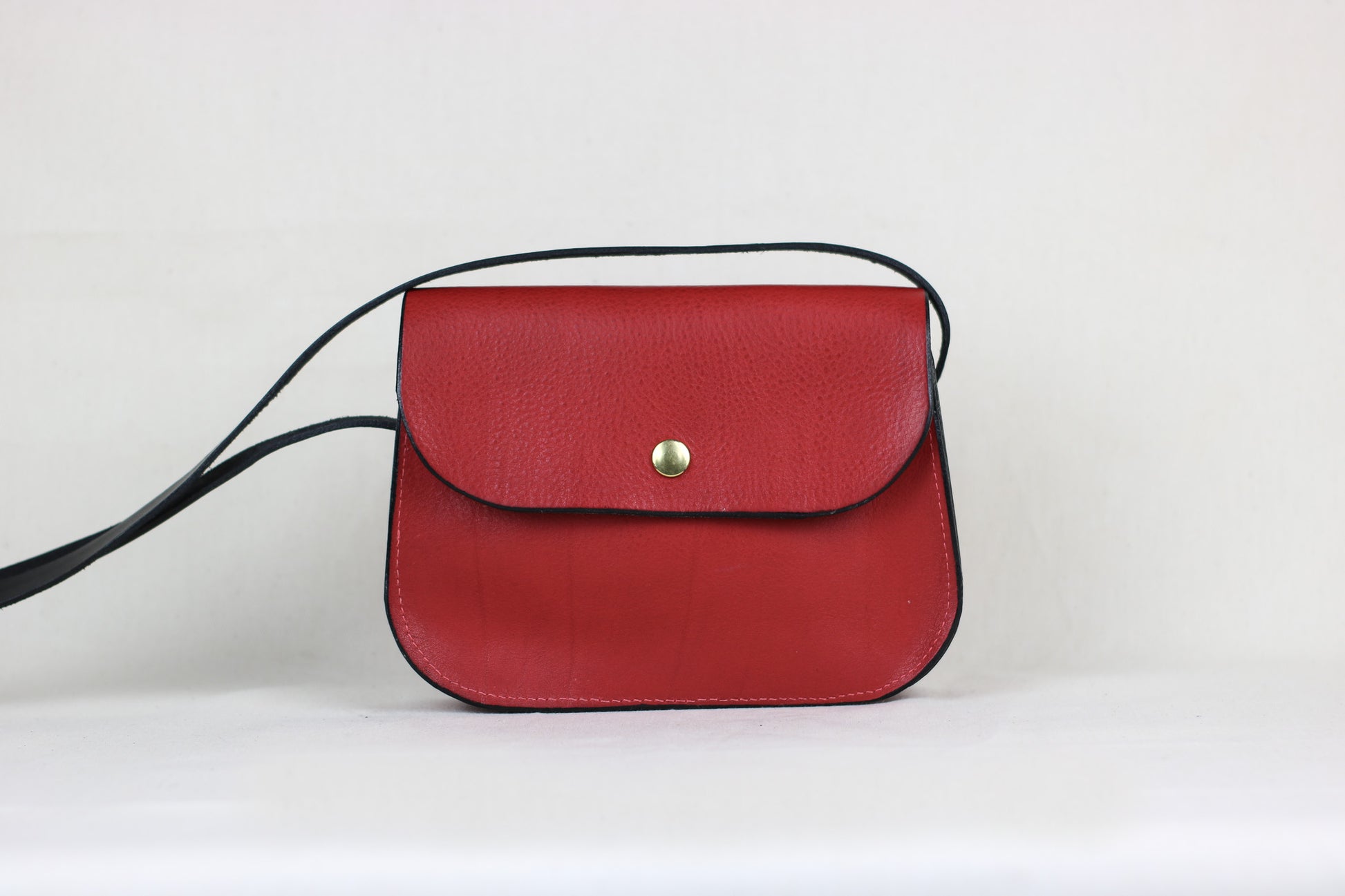 Small saddle leather cross-body bag. The Grace features a front snap closure and an adjustable cross-body strap.