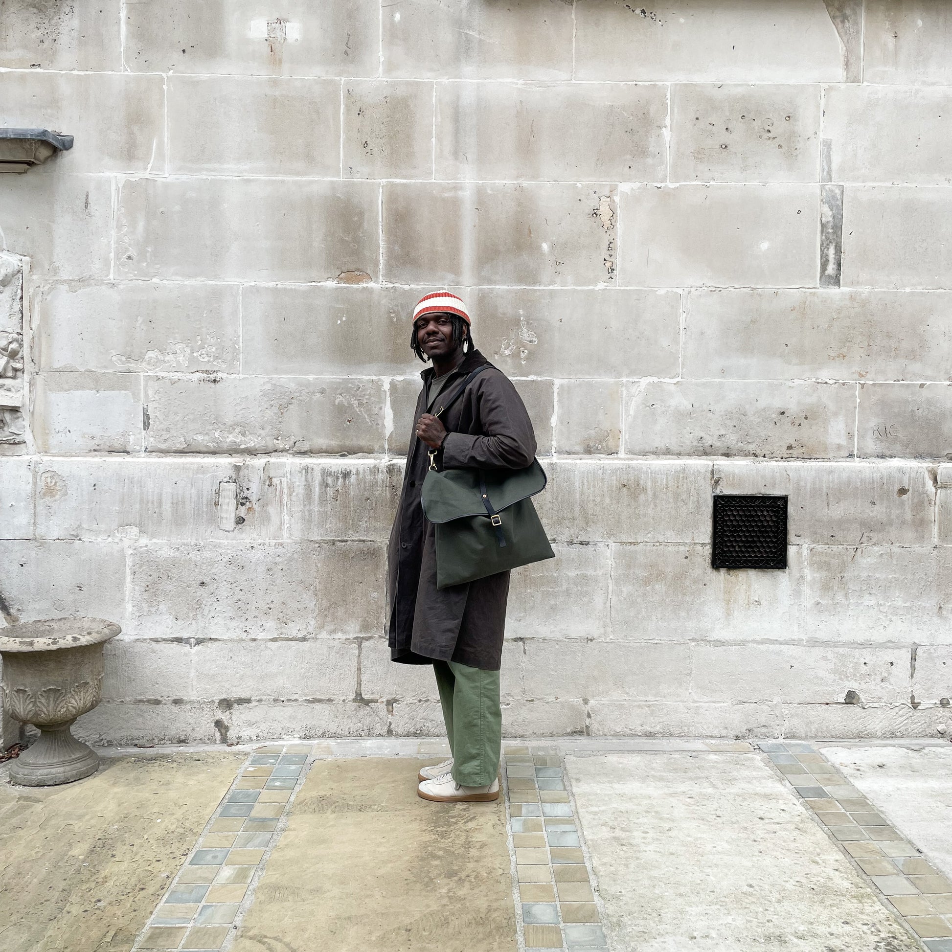 Canvas crossbody bag. The Islington is constructed from 18oz British canvas and features a front buckle closure, adjustable leather crossbody strap and copper rivets.