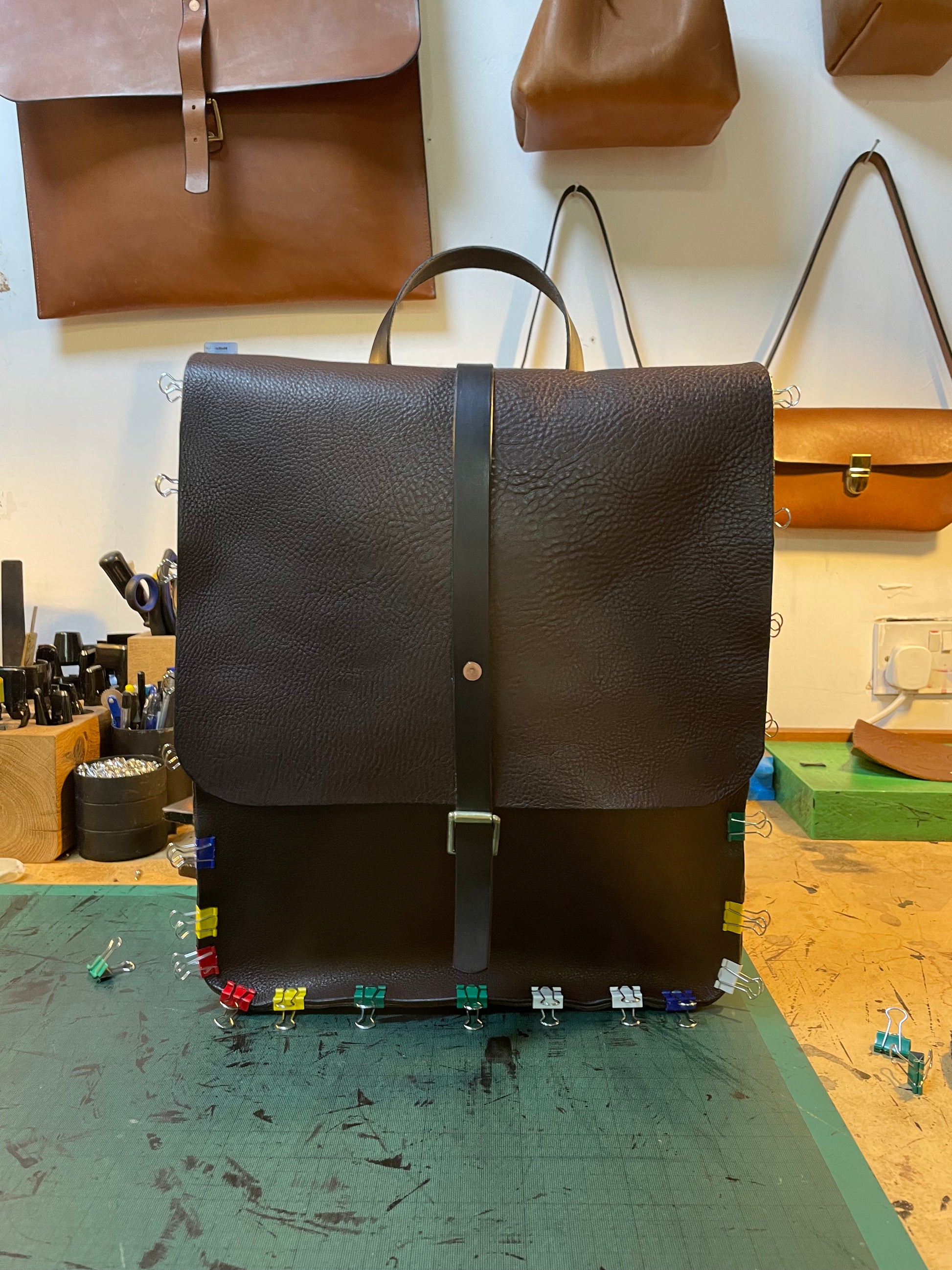 On day two we will be using our bag template to construct the bag design we drafted on day one, constructing using only traditional leather craft techniques.