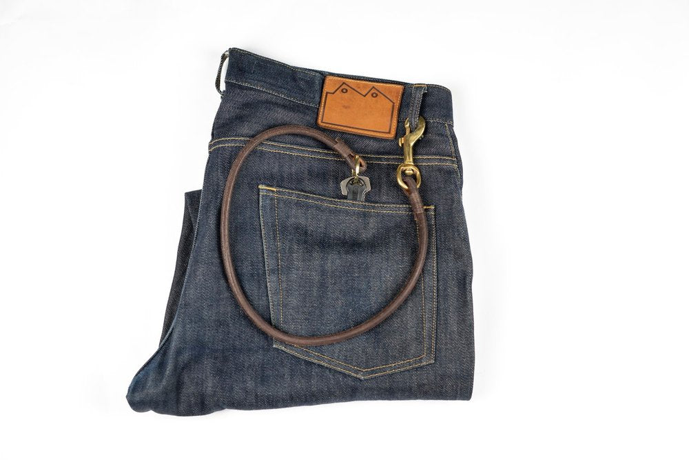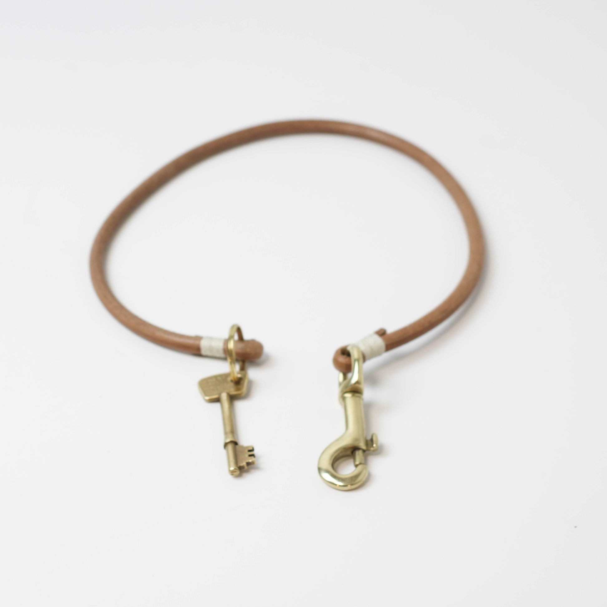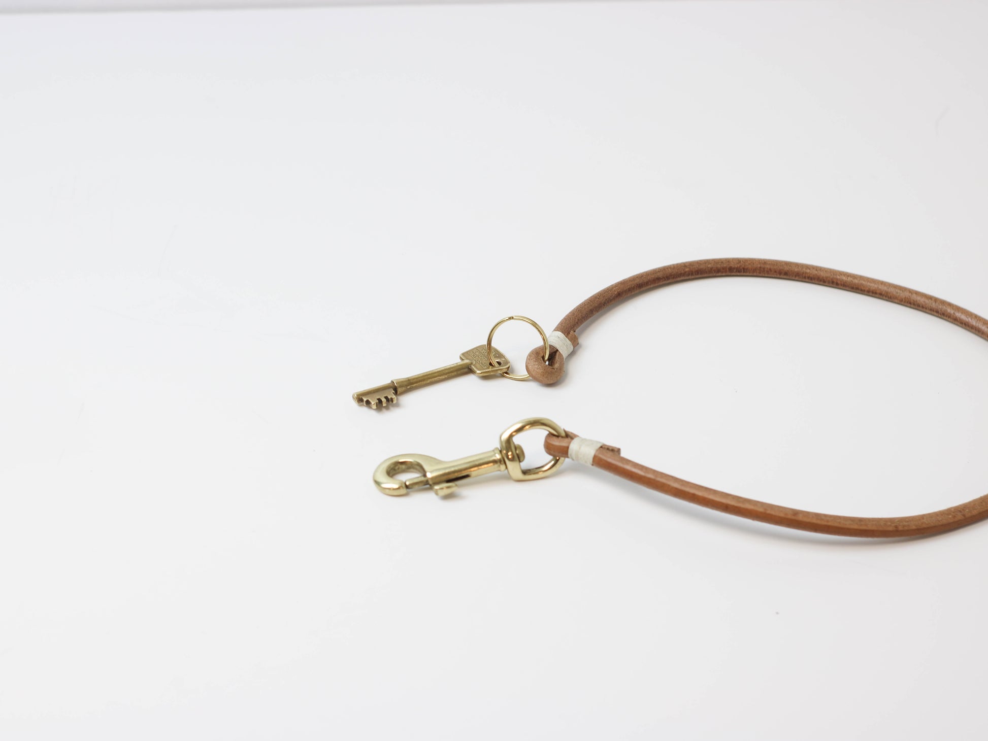 Leather key lanyard. Constructed from 8mm leather Belting. Features a trigger hook and a split ring.