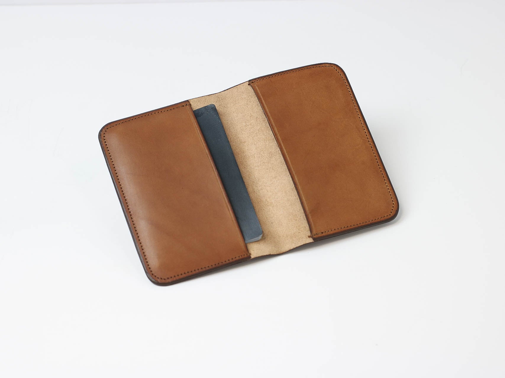 A Double compartment passport holder constructed from 1.8mm vegetable tanned Italian leather.