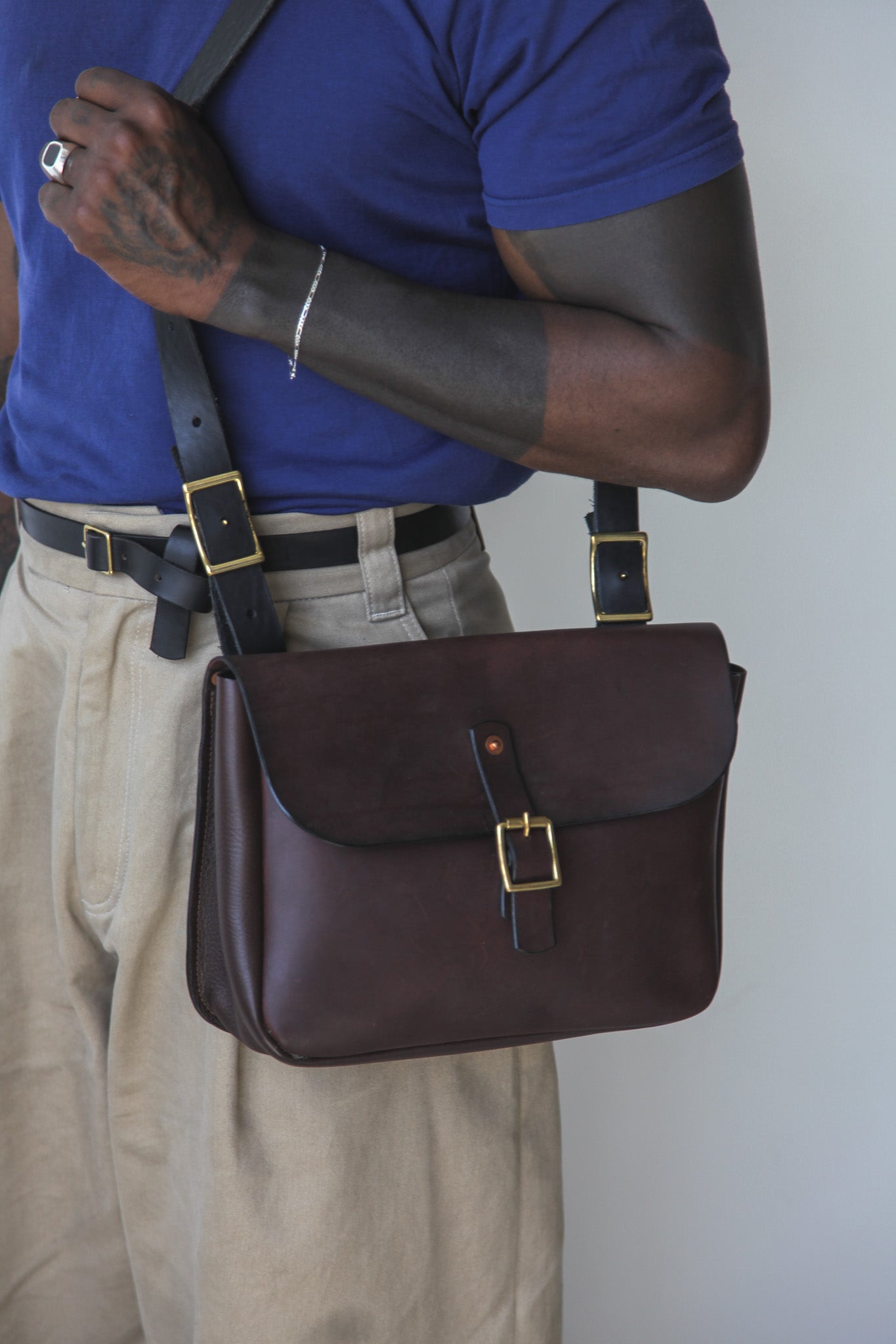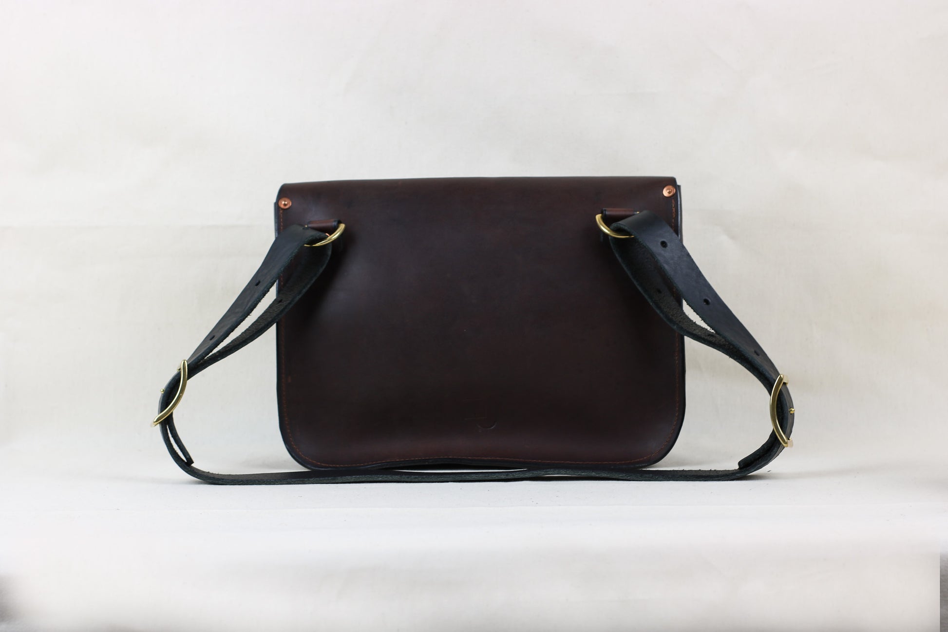 The Portland features a front buckle closure, two way adjustable cross-body strap and brass and copper rivet fittings.