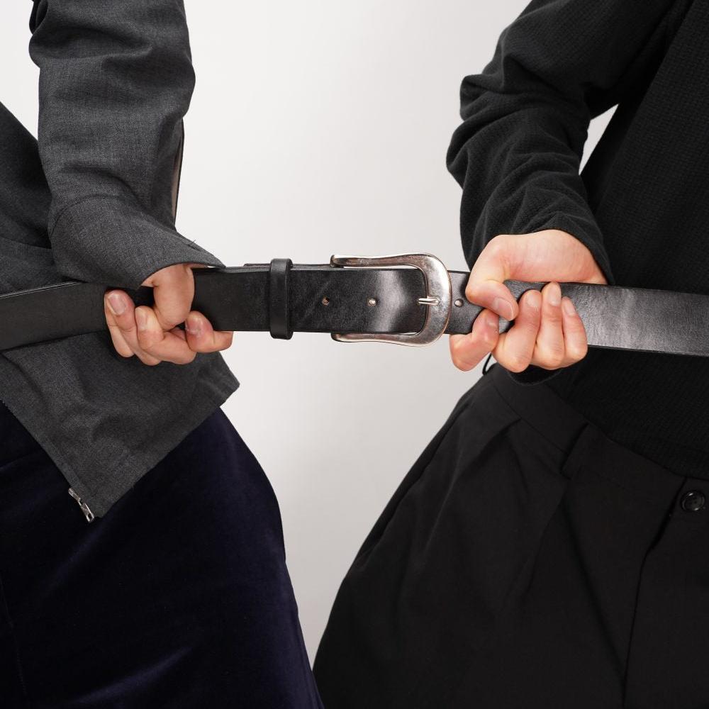 To find the correct size belt, first measure your waistline where your trousers sits. Taking into consideration the extra fabric from the trousers and top, it is recommended to add 2 inches to this measurement for your belt size.